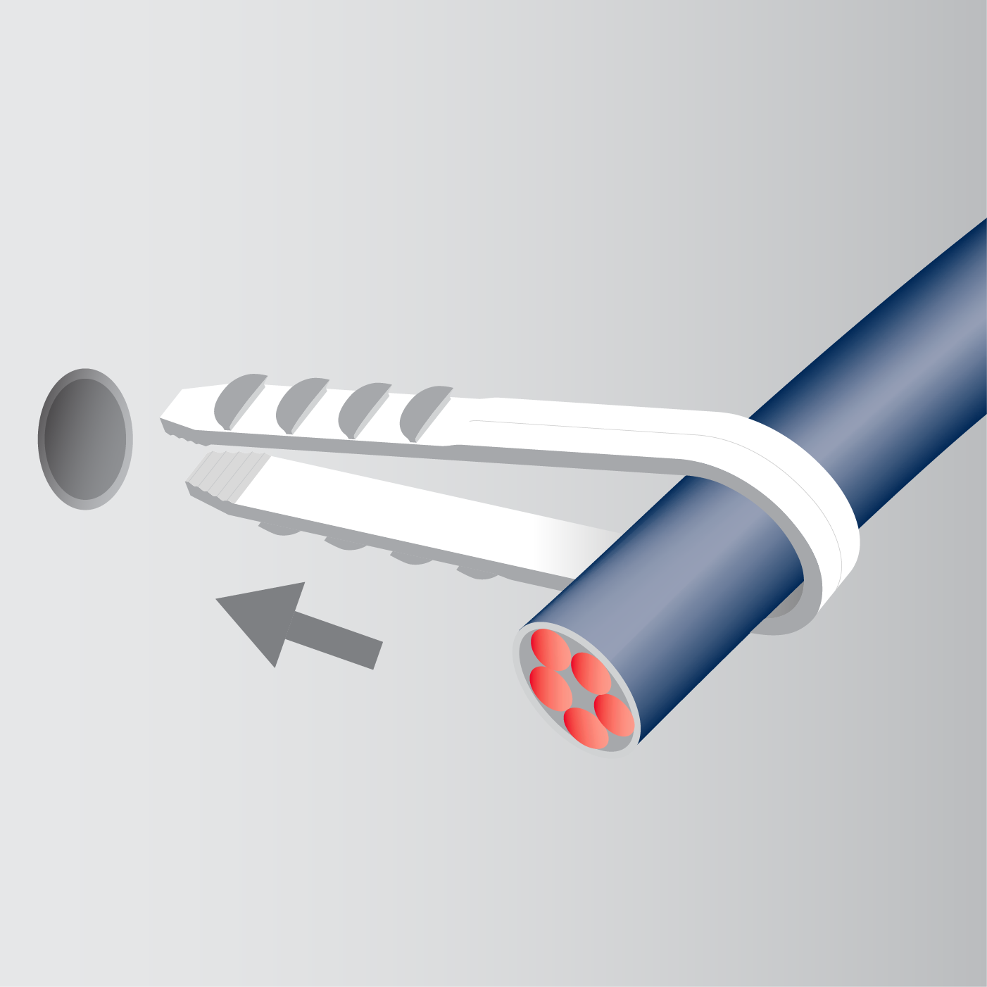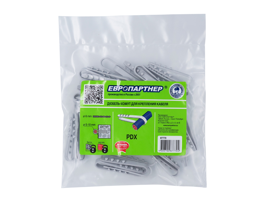 Дюбель-хомут PDX предназначен для быстрого и надёжного крепления круглого кабеля, металлорукава, гофрорукава. Дюбель-хомут монтируется вместе с обхваченным проводом в просверленное отверстие в стене.