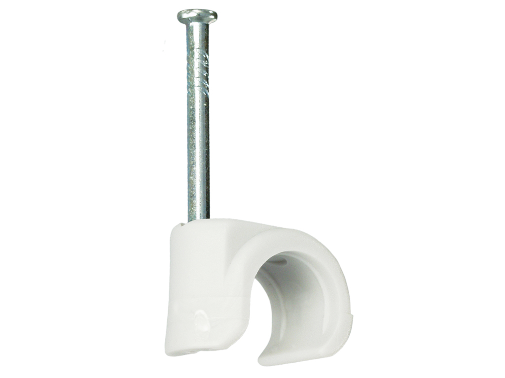 Гвоздь крепежной скобы изготовлен из закаленной стали с электрооцинкованной поверхностью.